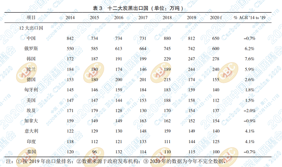 2 炭黑的生產(chǎn)大國(guó)與出國(guó)大國(guó)