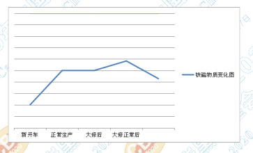 根據(jù)炭黑生產(chǎn)的經(jīng)驗(yàn),新建生產(chǎn)線炭黑產(chǎn) 品鐵磁性物質(zhì)含量少,隨著生產(chǎn)線使用時間的 增加,鐵磁性物質(zhì)的含量會逐漸增加,可參考 下圖。