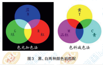 品紅、黃、青三種原色料混合,當(dāng)刺激值 X=Y=Z=1/3時(shí)得到的是黑色,稱為顏色匹配的減色 法,適合于涂料、油墨等。