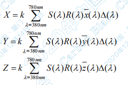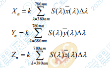 如果已知光源的相對(duì)光譜功率分布為S(λ),色 匹配函數(shù)為x(λ)、y(λ)、z(λ)則該光源的顏色三刺激 值 Xn、Yn、Zn 按下式計(jì)算: