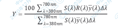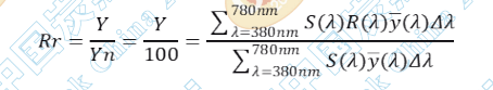 如果令 Yn 表示光源光的綠刺激值,強(qiáng)度為 100, Rr 表示物體反射光與光源光綠刺激值的比 (綠刺激反射率),則