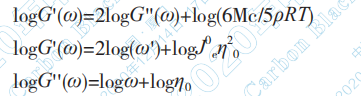 以 上 三 式 表 明 , 當(dāng) ω → 0,logG'~logω, logG''~logω 呈線性關(guān)系 , 且斜率分別為 2 和 1。
