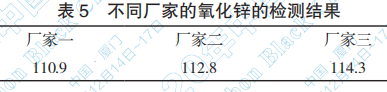 使用同一批 N220 樣品,分別用不同廠家的氧 化鋅做的著色強度檢測值見下表(表 5)。