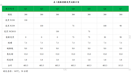 1.輪胎裂解炭黑試驗(yàn)方案