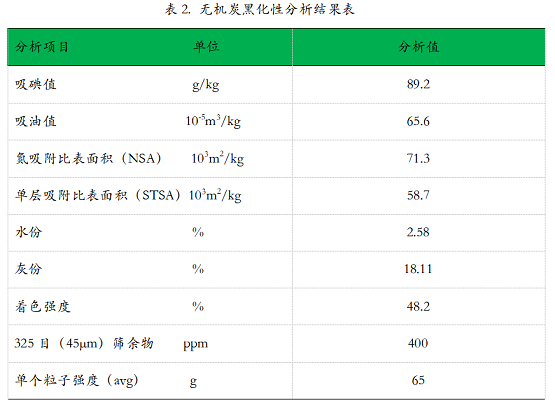 表2. 無(wú)機(jī)炭黑化性分析結(jié)果表