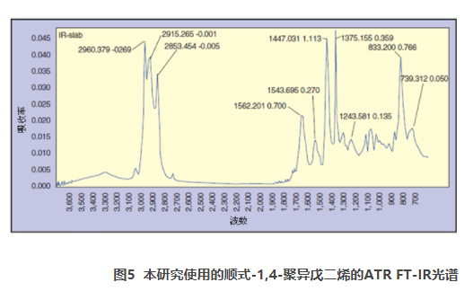 Kardan及其同事的傅立葉變換紅外光譜(FT-IR)外部反射實(shí)驗(yàn)表明,當(dāng)聚合物涂覆在基材上時(shí),聚合物的每一結(jié)構(gòu)亞單位在外表面上均具有一定的取向。聚合物在表面上的取向及其對(duì)基材的粘附取決于其構(gòu)象變化,而這些變化主要受聚合物與介質(zhì)的相互作用影響。在本研究中,我們利用衰減全反射紅外光譜(ATR-FTIR)作為主要技術(shù),來(lái)分析炭黑-橡膠復(fù)合物涂覆在金屬基材上時(shí)聚合物結(jié)構(gòu)的變化。紅外光譜測(cè)定結(jié)果與硫化復(fù)合物在金屬基材上成型時(shí)的實(shí)測(cè)搭接剪切的相關(guān)性,在闡明炭黑的補(bǔ)強(qiáng)機(jī)制方面頗有用處。由于天然橡膠與許多其它彈性體的結(jié)構(gòu)相似,我們從該分析中得出的結(jié)構(gòu)信息可傳遞給其它彈性體-炭黑膠黏劑和密封劑體系。