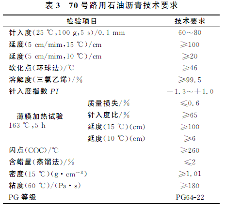 (2)基質(zhì)瀝青。生產(chǎn)橡膠瀝青所用的基質(zhì)瀝青采用70號(hào)道路石油瀝青,其技術(shù)要求見(jiàn)表3。