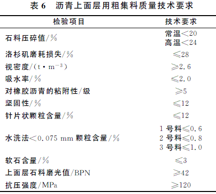 (1)集料。應(yīng)采用石質(zhì)堅(jiān)硬、清潔、不含風(fēng)化顆粒、近似立方體顆粒的碎石,粒徑大于4.75mm。宜采用玄武巖集料和輝綠巖集料,粗集料技術(shù)要求見(jiàn)表6。