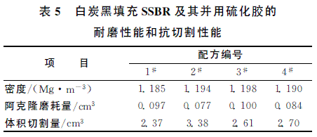 白炭黑填充SSBR及其并用硫化膠的耐磨性能和抗切割性能如表5所示。