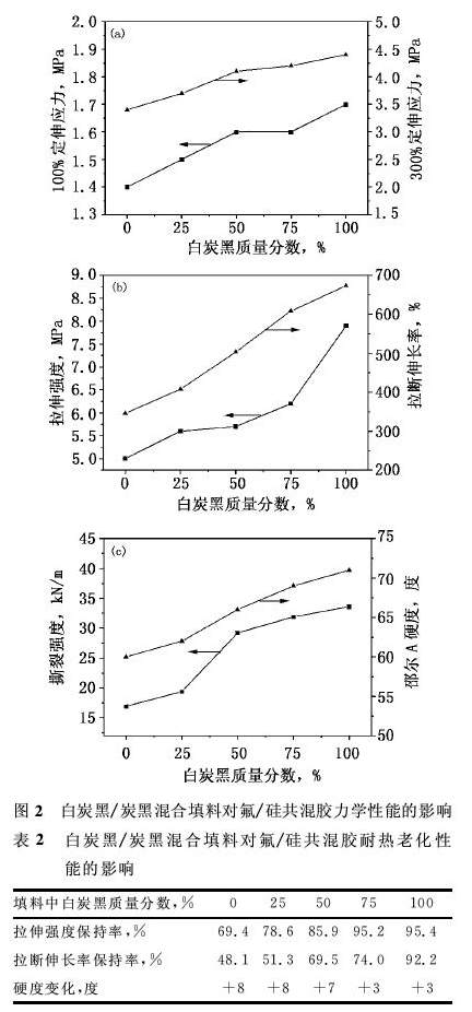 白炭黑/炭黑混合填料對(duì)氟橡膠/硅橡膠共混膠性能的影響