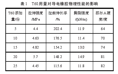 2.1.1 T60用量對(duì)橡膠物理性能的影響