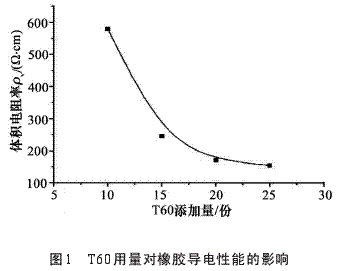 2.1.2 T60用量對(duì)橡膠導(dǎo)電性能的影響