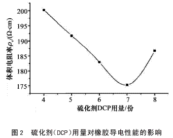2.2.2硫化劑用量對(duì)橡膠導(dǎo)電性能的影響