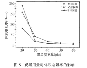 3.2導(dǎo)電炭黑用量對(duì)體積電阻率的影響