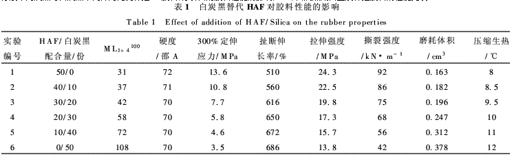 2.1 白炭黑替代HAF對膠料性能的影響