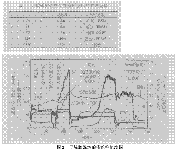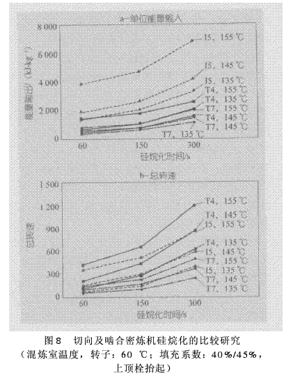 (2)不同的密煉機(jī)和轉(zhuǎn)子類型——從進(jìn)料性能、硅烷化效率和焦燒危險(xiǎn)性等方面,對(duì)轉(zhuǎn)子構(gòu)形和能力不同的密煉機(jī)進(jìn)行了比較;
