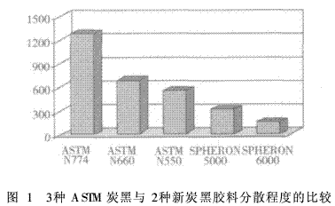 市場上出現(xiàn)的新炭黑已經(jīng)在工業(yè)橡膠制品中得到應(yīng)用,炭黑生產(chǎn)商和用戶對其良好的潛力進(jìn)行了試驗(yàn)和選擇?,F(xiàn)在,以卡博特公司的幾種新炭黑為例,簡要說明它們賦予膠料的各種性能。2. 1 膠料的分散性更好