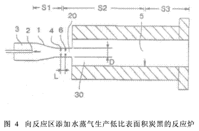 4. 1 反應(yīng)區(qū)添加水蒸氣,生產(chǎn)低表面積炭黑