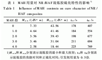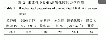 未經(jīng)MAH單體改性的NR/HAF復合材料硫化膠的力學性能測試結(jié)果見表2.