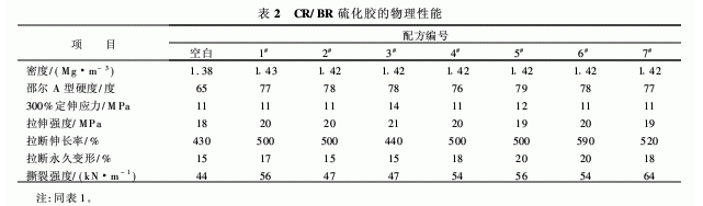 CR 95,BR 5,炭黑N762 18,炭黑N33010,氧化鋅 5,硬脂酸 1,納米白炭黑 15,納米二氧化鈦 7·5,活性氧化鎂 3·8,防老劑ODPA 2·8,芳烴油 2·8,促進(jìn)劑DM 0·9,偶聯(lián)劑(變品種) 1。