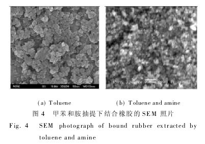 抽提后混煉膠的形貌:將混煉膠在液氮下脆斷,其斷面用JSM-5600LV型場發(fā)射掃描電子顯微鏡(日本電子株式會社)觀察。