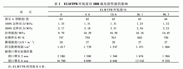 ELMTPB環(huán)氧度對(duì)SBR硫化膠性能的影響