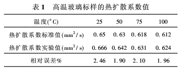 為了驗證實驗的準確性和精確性,選用德國耐馳公司提供的高溫玻璃標樣進行校核實驗,實驗結(jié)果列于表1。