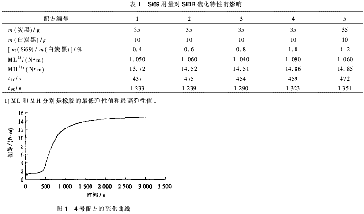 (1)在以炭黑補強SIBR為主的膠料體系中,偶聯(lián)劑Si69具有延緩硫化時間的作用;Si69在SIBR膠料中的最佳用量為白炭黑用量的8%~10%。