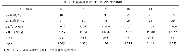 2.3 白炭黑用量對SIBR硫化特性的影響