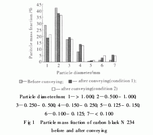 a)根據(jù)初步的正交試驗及經(jīng)驗判斷結(jié)果,通過優(yōu)化輸送工藝參數(shù),炭黑N 234的破碎率可降至6·47%。
