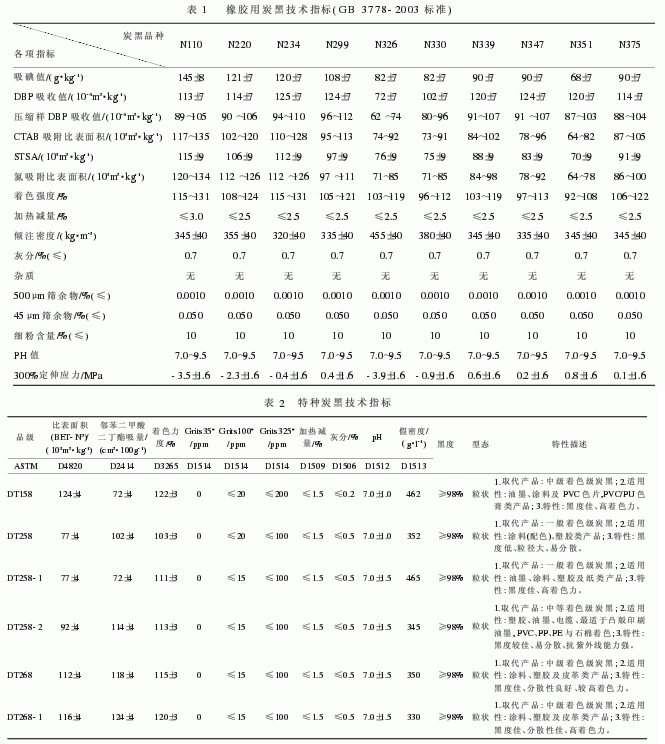 寧波德泰化學(xué)有限公司是一家專業(yè)生產(chǎn)炭黑的中外合資企業(yè)。公司依托中石化華東分公司的乙烯焦油和寧鋼的煤焦油等資源優(yōu)勢,在消化吸收國內(nèi)外先進(jìn)炭黑生產(chǎn)技術(shù)的基礎(chǔ)上,開發(fā)國內(nèi)最先進(jìn)的大型五段反應(yīng)器生產(chǎn)技術(shù),進(jìn)口了許多關(guān)鍵生產(chǎn)設(shè)備和檢測設(shè)施,并在原料油預(yù)處理、DCS微機(jī)控制技術(shù)、高溫空氣預(yù)熱器、顯熱回收、高效脈沖袋濾、濕法造粒、炭黑精制處理、尾氣綜合利用、治理等方面作了重大革新,使整體裝置水平處于國內(nèi)領(lǐng)先。同時,與中橡集團(tuán)炭黑工業(yè)研究設(shè)計院聯(lián)合共建了“寧波德泰炭黑新材料及應(yīng)用研究工程技術(shù)中心”。公司計劃到2010年建成三套共計10萬噸/年的軟、硬質(zhì)炭黑生產(chǎn)裝置,以及配套汽電站,可提供N100、N200、N300系列和DT258、DT268系列特種炭黑,應(yīng)用于高等級輪胎、橡膠制品、塑料、涂料、油墨、合成革等產(chǎn)品中?,F(xiàn)就橡膠用炭黑和特種炭黑的主要性能指標(biāo)進(jìn)行對比。