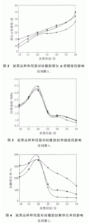 本工作研究炭黑品種及用量對(duì)硅橡膠導(dǎo)電性能和物理性能的影響。