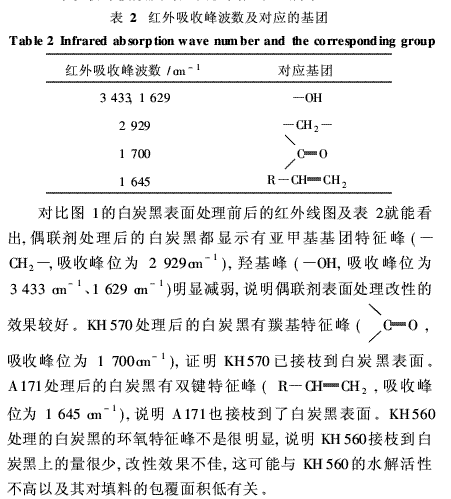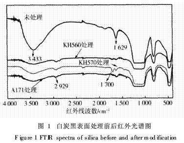 表面處理前后的白炭黑FT-IR紅外測試:日本島津(Shi-madzu)IRPrestige-21紅外光譜儀。