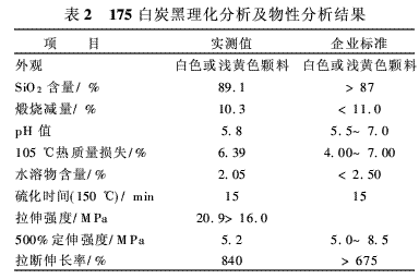 175GR白炭黑的理化分析結果見表2,可以看出,175GR白炭黑的理化性能達到指標要求。