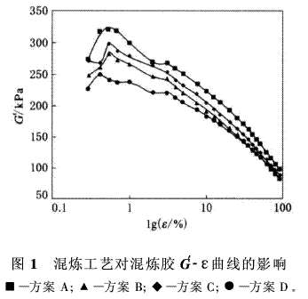 本工作研究混煉工藝對炭黑/白炭黑補強NR膠料性能的影響。