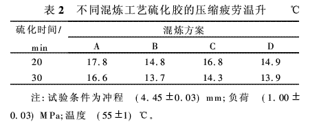 混煉工藝對硫化膠壓縮疲勞性能的影響如表2所示。