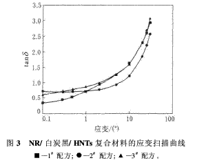 NR/白炭黑/HNTs復合材料的應變掃描曲線如圖3所示。