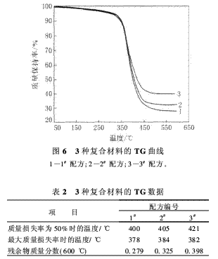 1#~3#配方膠料的TG曲線如圖6所示,TG數(shù)據(jù)如表2所示。