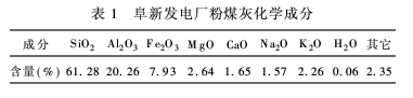 粉煤灰:來源于阜新發(fā)電廠,其化學(xué)成分如表1所示。