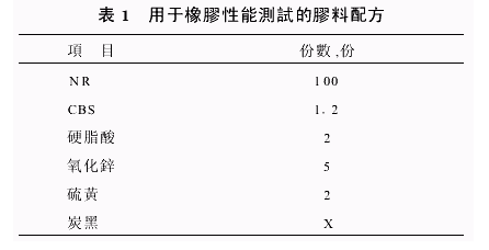所有炭黑品種由SidRichardson炭黑公司提供。常規(guī)炭黑品種有:N110、N220、N330、N550、N772實(shí)驗(yàn)炭黑品種有:A 1、A 2、A 3。