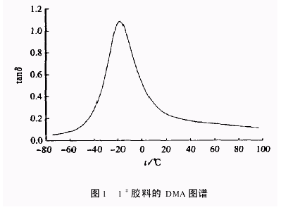 實(shí)驗(yàn)在德國(guó)NETZSCH公司生產(chǎn)的DMA242儀器上進(jìn)行,實(shí)驗(yàn)條件為:加熱速率3K/min,加熱頻率10Hz,載荷2N,振幅120μm,液氮?dú)夥?溫度范圍為-100~100℃。實(shí)驗(yàn)配方如表1所示。