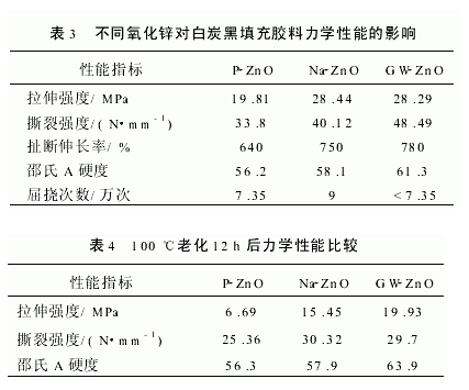 2 .3不同氧化鋅對(duì)膠料中力學(xué)性能的影響