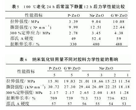 2 .5納米氧化鋅的用量不同對(duì)膠料力學(xué)性能的影響