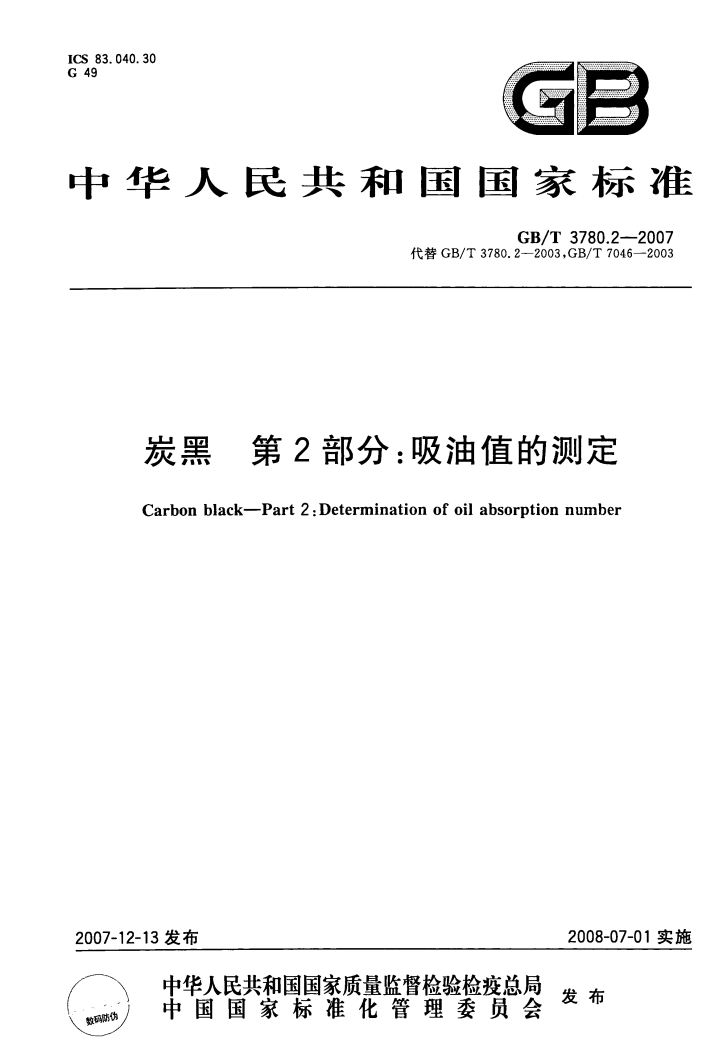 范圍GB/T 3780的本部分規(guī)定了測定橡膠用炭黑及乙炔炭黑吸碘值的方法。本部分適用于各類橡膠用炭黑(不包括S系列、混氣和天然氣槽法炭黑)及乙炔炭黑。不適用于有表面多孔性、揮發(fā)性和抽出物存在的炭黑