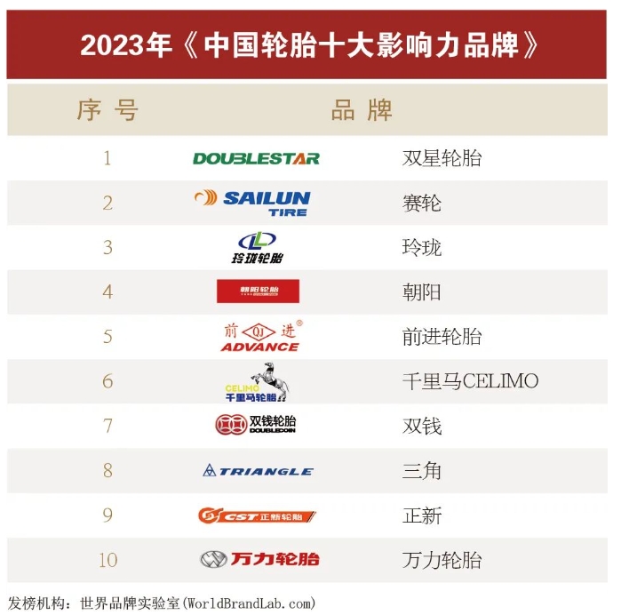 雙星輪胎蟬聯(lián)十大輪胎品牌之首,萬力輪胎強勢入圍