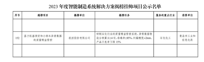 【炭黑產(chǎn)業(yè)網(wǎng)】1月11日消息,近日,軟控股份有限公司憑借其創(chuàng)新性的“基于機器視覺和小樣本異常數(shù)據(jù)的質(zhì)量精益管控”方案,成功躋身國家工信部“2023年度智能制造系統(tǒng)解決方案揭榜掛帥項目”榜單。