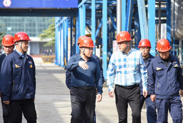 調(diào)研團隊首先實地走訪了韓城黑貓公司的炭黑車間與儲運中心,對現(xiàn)場的生產(chǎn)環(huán)境、設(shè)備運行狀況以及管理流程進行了細致的觀察與詢問。汪羽董事長特別關(guān)注了企業(yè)在生產(chǎn)運行、現(xiàn)場管理以及安全環(huán)保等方面的實際情況,并聽取了相關(guān)負責人對公司整體運營狀況、一季度工作重點及未來發(fā)展規(guī)劃的詳細匯報。