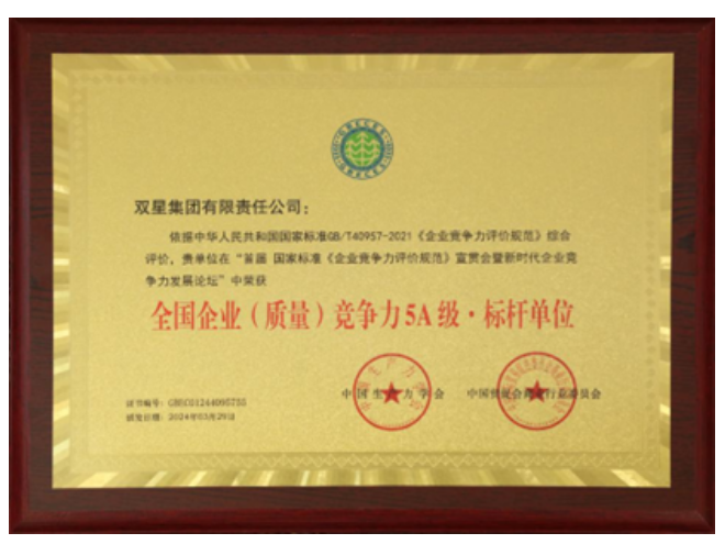 論壇的一個(gè)亮點(diǎn)環(huán)節(jié)是對(duì)在各自領(lǐng)域內(nèi)表現(xiàn)卓越的企業(yè)進(jìn)行表彰。備受矚目的雙星集團(tuán)憑借其在智能制造與質(zhì)量管理方面的突出成績(jī),榮獲“全國(guó)企業(yè)(質(zhì)量)競(jìng)爭(zhēng)力5A級(jí)·標(biāo)桿單位”的榮譽(yù)稱號(hào)。這一榮譽(yù)不僅肯定了雙星在行業(yè)內(nèi)的領(lǐng)先地位,更是對(duì)其不斷追求卓越品質(zhì)和創(chuàng)新精神的認(rèn)可。