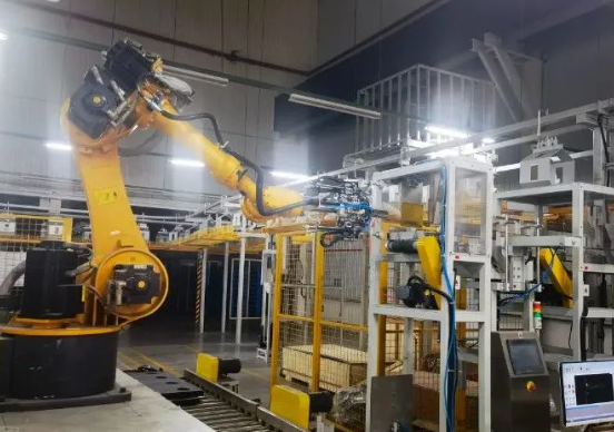 在公司的捻線車(chē)間,高效運(yùn)轉(zhuǎn)的機(jī)器人通過(guò)精確的機(jī)械臂將“銀線”卷繞成筒,并有序地進(jìn)行碼垛。隨后,智能導(dǎo)引運(yùn)輸車(chē)將成品精準(zhǔn)地運(yùn)送到指定存儲(chǔ)位置,整個(gè)過(guò)程流暢而高效,極大地提高了生產(chǎn)效率。