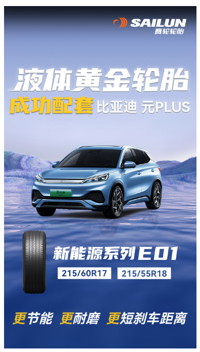 【炭黑產(chǎn)業(yè)網(wǎng)】4月14日消息,近日,國內知名的輪胎制造商賽輪憑借其領先的技術實力和卓越的服務質量,成功贏得了為比亞迪元PLUS車型提供配套輪胎的機會。此次所提供的輪胎型號為液體黃金新能源EV系列的215/60R17與215/55R18,這兩款輪胎是賽輪針對全球中高端主流新能源車特別研發(fā)和推出的產(chǎn)品。
